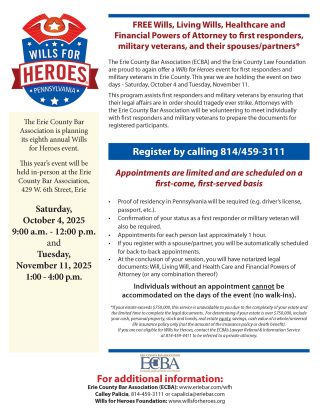 FREE Wills, Living Wills, Healthcare and Financial Powers of Attorney to first responders,